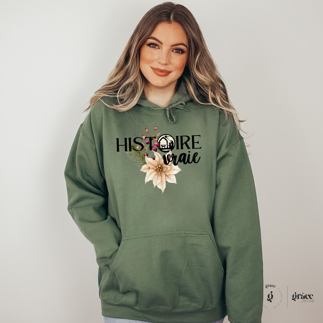 J'aime beaucoup le hoodie, le matériel est de qualité, et le design est super beau. Je suis fière de partager ma foi en le portant.