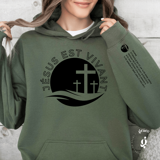 Jesús está vivo suéter estilo canguro (Juan 3:16)